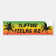 Rasta flag coloured customisable bumper sticker, with the slogan FEELING IRIE, and black palm trees. All text is customisable, so you can add your own name and slogan