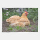 Ska fega älskare uppskattar denna sämskskinns- orpingtonhöna som framme värma sig i eftermiddagsolen av ryssvis man
