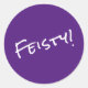 Feisty! Skrivs i vitt, modernt typsnitt på trendiget på ett lila-klistermärke. Den här designen finns i två storlekar (stora 3 tum med 6 till en lakan eller små 1,5 tum med 20 per lakan). Du kan också välja glansig eller projektionsyta som avslutar. Även om det också finns i många former, om du väljer ett annat alternativ än det som visas, måste du förhandsgranska det innan du beställer - bara för att se till att du tycker om resultatet.