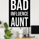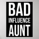 Dåligt inflytande på Moster Autie-designen. Typografisk design med roligt citat, roligt talesätt. Lustigt typografiskt mönster med moster citat, moster. Lustigt citat från moster. Lustigt moster ord. Moster-design. Auntie design. Moster-design med rolig typografi. Svartvit version
