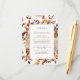Förbättra din bröllopsdags elegans och organisation med Bröllop-adapterkortet för falldetaljer, som ingår i vår fantastiska höstsamling i Bröllop. Det här vackra kortet har en fortsättning på svit-färgade vattenfärgsverk med lush terracotta löv, kräm dahlias och koppar ro, mot en färsk vit bakgrund. De här inneslutningskorten är perfekt för att ge dina gäster viktig information, t.ex. anvisningar, bostadsinformation eller ytterligare händelsespecifikationer, och är helt i anpassade till kostym som du behöver och till temat bröllop. Inkludera dem i inbjudan att ge behålla till dina gäster med god information och att upprätthålla en sammanhängande, romantisk autumnal estetik i all kommunikation i bröllop.