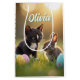I en tyst vår-ängsskugga, under den gyllene glöden av sol, en blommar för vänskap av uppvärmning. Felini... Katten i tuxedo sitter näsa och näsa med en fin baby-bunny, deras ögon i stort med försiktig nyfikenhet. Färgfulla Påskägg vilar i närheten, som om naturen själv har gått med in sig i detta fredliga, magiska ögonblick. Det är inte bara ett foto - det är en historia om oskuld, värme och anslutning. Den här charmerande bilden fångar andan från Påsk genom två osannolika vänners band och är perfekt för Julhälsningar kort, leksakskonst, Påsk décor eller hjärtliga gåvor. Vare sig du är en fläkt av katter, knivar eller sak mysigt och söt, får du nog att le på den här våren.