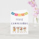 Spanska födelsedagskort (tarjeta de cumpleaños) med födelsedagsmeddelande på spanska (Feliz Cumpleaños, grattis på födelsedagen på spanska) och traditionella mexikanska temaillustrationer. Innehåller födelsedagsmeddelande på kortet Feliz Cumpleaños.