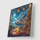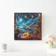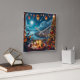 Feliz Navidad Festive Guitar Player Coastal Town Immerse själv i säsongens anda med denna charmerande illustration. Den här festscenen fångar julens värme och glädje som en grått-ledd man med ett skägg och svartklädda glasögon sergeant en kuststad under en fullt måne. Bord, försedd med ljus, inslagna gåvor och vin, skapar en mysigt och inbjudande atmosfär. Utanför belyses staden av ljus och Julgranar, medan luftballongerna flyter på ett skickligt sätt i himmel. Perfekt för att tillföra helgdag till ditt hem eller som en tankfull gåva till en älskad. Bilden skapat med AI.