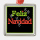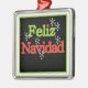 Helgdag keepsakes ornament lyder "Feliz Navidad" i grönt och röd text.