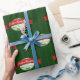Här har vi ett vackert papper som innehåller ett rött band och en dekorerad oval som säger "Feliz Navidad y Prospero Ano Nuevo" på en ljust grönt och mörk grönt, rand bakgrund. (Översättningen är God jul och Gott nytt år). Detta papper finns i många-storlekar och är en matchning mot andra inslagna , vävnadspapper, presentpåsar och ett gratulationskort. Det här är en perfekt till dina gåvor den här julhelgen.