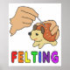Filtdesignen visar ett par feltör händer som ritar en filtbugg med ord "Felting" nedanför i regnbåge färg. En roligt-filtdesign för entusiaster!