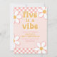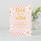 Fem är en Vibe Groovy Girl Retro-inspirerad till 5:e födelsedagsinbjudan med 70:s stil typsnitt och daisy och kontrollör mönster.