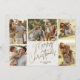 Helgdagskorten för multifotojul har namn och ord God jul i chic guld med benvita bokstäver. Ladda bara upp dina favoritfoton från familjen och lägg till din familjeanpassning på baksidan. Välj Projektionsyta för tyngsta pappra och HD-kvalitet för bästa fotokvalitet.