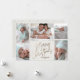 Helgdagskorten för multifotojul har namn och ord God jul i chic guld med benvita bokstäver. Ladda bara upp dina favoritfoton från familjen och lägg till din familjeanpassning på baksidan. Välj Projektionsyta för tyngsta pappra och HD-kvalitet för bästa fotokvalitet.