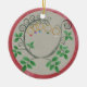 Fira 12 juldagar med den här handmålade prydnaden av Fem Golden Ringar och hand med "Femte juldagen på baksidan. 2,87-tums rund, tillför den här vattenfärgen porslinsfärgning en liten bit stollig till en speciell gåva eller häng på en träd. Ett av tolv scener som illustrerar det traditionella sång, de tolv juldagarna.