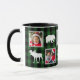 Denna roliga mugg presenterar 5 fotomallar, skogsmarkdjur, och pläd för grönt- och svartbuffelkontroll! Textmallar för monogrammärkning.