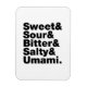 Lustigt Cuisine i köket, parody/Gourmet Foodie Restaurant Humor ~ 5 Basic Tastes ~ Sweet & Sour & Bitter & Salty & Umami. Globe Trotters specialiserar sig på idiosynkratiskt bildmaterial från hela världen. Här hittar du unika hälsningskort, vykort, Poster, Mousepads med mera.