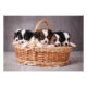 Den här söta designen har en liten bit med fem valpar sitta i basket.