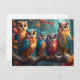 Fem Uggla utförde vid ett Träd Gren Vykort