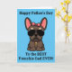 Frenchies, visa Pappa lite kärlek i Far med ett kort för personlig från dig. Budskapet på kortets framsida lyder: "Lycklig Far's Day to the Best Frenchie Pappa någonsin!" Inuti meddelandet står det "I kärlek mer än walkies, Lycklig Far's Day". Utformningen har en söt illustration av en brun och brun fransk av färgad i tecknad med en rosa båge och hals. Teckensnitt och bakgrund färg och bytas ut.