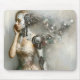 Robotiska kvinnliga cyborgai-konst. Kvinnor i blekens rosa klär sig med roboten metall arm och nacke.
