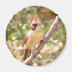 En vacker kvinnlig kardinal som pockar på gren. En underbar gåva till en kardinal eller fågel älskare.