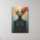 En fängslande abstrakt porträtt av ett kvinnligt figur med en mörk silhuett som kontrasteras av ett pulserande stänk av orange, rött och gult färg, och skapar en dynamisk och uttrycksfull teckning. Perfekt för konstentusiaster älskare och hemideentusiaster som söker djärva contemporary.