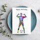 Greeting card featuring a colorful watercolor silhouette of a female soccer player. A stylish and inspiring sports-themed card ideal for athletes, coaches, and fans.