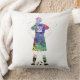 Decorative pillow featuring a vivid watercolor-style female soccer player. Adds a splash of athletic energy and modern art to any room.