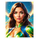 Digitalmålning med hög detaljrikedom av en sci-fi/fantasyheroin som visas i en trekvarts tecknad-bok stil porträtt. Hon har slående grönt ögon och flödande hår, med glättad mardröm och guld, inramad av en glansande cirkulär halo mot en djup teal, stjärnbakgrund. Filmljus och målningsljus i struktur ökar djup och realism. Presenterad som ett pussel i pussel - perfekt för fläkt av superhjältar, tecknade konst och popkulturområde samt produktlistor, poster och presenter.