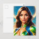 Digitalmålning med hög detaljrikedom av en sci-fi/fantasyheroin som visas i en trekvarts tecknad-bok stil porträtt. Hon har slående grönt ögon och flödande hår, med glättad mardröm och guld, inramad av en glansande cirkulär halo mot en djup teal, stjärnbakgrund. Filmljus och målningsljus i struktur ökar djup och realism. Presenterad som ett pussel i pussel - perfekt för fläkt av superhjältar, tecknade konst och popkulturområde samt produktlistor, poster och presenter.