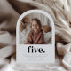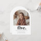 En enkel inbjudan från den femte födelsedagen som innehåller ditt eget foto i en båge och ord "fem" under. Du kan snabbt och enkelt lägga till ett eget foto i den här designen.
