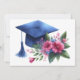 Feminin blå Studentmössa och Rosa Flowers Tack Kort