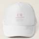 Visa upp din personliga stil på banan med denna feminina rosa och vita minimalistiska monogramkeps. Med två initialer och ett för- och efternamn åtskilda av ett dekorativt snedstreck, kombinerar denna rena design söt rosa typografi med en krispig vit bakgrund för en fräsch, modern look.