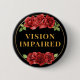 This elegant button features the slogan 'Vision Impaired' surrounded by a floral border of red roses on a black background. You can edit the text as needed. 🌹 For more blindness accessories, visit my store: Zazzle.com/Elder_Vitality 🌹 For custom orders, message me on Zazzle