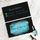 Modern och feminin affärskort med personlig som har en faux guld-folierektangel ram med turkos vattenfärgade penseldrag på en svart bakgrund. Texten är helt och hållet anpassade. Om du vill ändra användan väljer du Anpassa. Om du vill ha fler ändringar, t.ex. ändringar i teckensnitt, teckensnitt färg eller textlayout, användor du alternativet Redigera design verktyg.