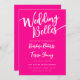 Den här gigantiska bröllopsinbjudan innehåller ett shock rosa- och vitt färg-schema. Den är parad med sans serif och script typsnitt, där den lustiga pun med rubriken "Bröllop Belles", deltagarens namn och uppgifter om bröllop, inklusive plats, datum och tidpunkt. Utstående egenskaper är den stora rubriken och det moderna monogrammet på baksidan. ⚠ Rubrikteckensnittet är Singapore. Om du vill använda speciella tecken kopierar du dem från www.zazzle.com/singapore_font_ligatures_poster-228436244039070899 ⚠ Bläddra i min samling efter matchande kuvert och kontorsmaterial. ・ ・ ・ Om du vill ha fler bröllop-paket kan du besöka min butik Zazzle.com/EventsByJessicaAmber