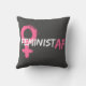 Visa ditt stöd för kvinnors grundläggande höger med den här dekorativ kudde-designen som har en brushstroke-rosa kvinnlig symbol med texten "feministisk af" på svart bakgrund