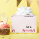 "Jag är feminist, vad är din supermakt?" En slogan om roligt för att framföra ett seriöst budskap. Texten står i fet svart text på blekens rosa, med "feminist" i djup rosa för kontrast.