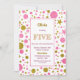 En rosa och guld-stjärnor och prickar, som en gigantisk konfekt, femte födelsedagsfest inbjudan.