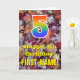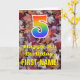 Framsidan av denna färgstarka, hösttematiska och högtidliga gratulationskort har ett stort nummer "5" med en regnbågsspektrumövertoning som inspirerade mönster, tillsammans med meddelandet "Lycklig 5:e födelsedagen" och ett eget namn. Bakgrunden till kortets framsida har en kraftig nedgång i höst löv mönster. Insidan innehåller ett hälsning-meddelande från personligens födelsedag, eller kan kanske tas bort och lämnas tomt om ett meddelande ska skrivas för hand i stället. Ett sådant här födelsedagskort i personligen kan vara ett roligt sätt att skicka önskemål till någon som firar sin femte födelsedag. [~Z0000384]