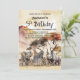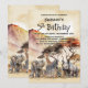 Inbjudan dina vänner och nära och kära och fira ditt barns femårsdag med detta safari födelsedagsfest inbjudan som har ett afrikanskt savannalandskap i bakgrunden och en grupp baby djur, som omfattar en tiger unge, elefant, noshörning, strutsande chick, zebra och stork i förgrunden.
