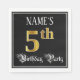 Den här pappra napkindesignen för elegant och årsdag har en personlig namn och meddelandet "femte Födelsedagsfesten". Det stora antalet "5:e" har faux/imitation guld-inspirerad färg mönster, ord "Födelsedagsfest" är i lyxig text som heter stil och bakgrunden är färgad svart som standard (även om den kan anpassas). Luxuriösa, finare-pappra servetter av detta slag kan vara användbara vid en födelsedagsfest som hålls för att fira någons femårsdag. [~Z0000565]