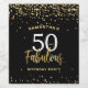 Modern elegant 50 och Fabulous födelsedagsfest flaska. Design innehåller calligraphy-skript 50 och fantastiska på svart bakgrund och guld-konetti. Anpassa med namn.
