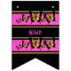 50:e Födelsedagsfestens Anpassningsbar Bunting dekoration! Den här öga-designen för fångst och glam har färg guld, svart och rosa. Varje buntning har en växelformad flagga, allt på en svart bakgrund. På en bild står "50 & fantastiska" i en luxuriös rik, gyllene text med svart kontur. Detta står mot en rosa bakgrund på ett sådant sätt att det framträder. Å andra sidan är det ett utrymme för er att lägga till er egen text, i det här fallet har det namnen på den person vars födelsedag firas i rosa med 2 set med 5 svarta och gyllene fjärilar med vingar som är öppna och i visning. Även detta är mot bakgrund av den fantastiska rosan. Den här fantastiska designen ingår i en 50-uppsamling med fantastiska födelsedagsfester.