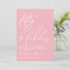 Fira i stil med denna eleganta men moderna femtioårsfirande födelsedagsinbjudan, perfekt för att markera en milstolpe på ett snyggt sätt. Designen har en mjuk rosa bakgrund med ”Femtio och fantastisk” högst upp i ett flytande handskrivet typsnitt för en stilren och festlig känsla.