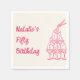 Som du ser har napkin för den här unika eleganten och femtioårsdagen en väl designad mall. Med den levande rosa hand plockade champagne torn och viskhandskriven namn. Allt på gräddbakgrunden. Du kan enkelt anpassa genom att låsa på knappen Anpassa.