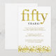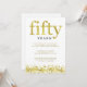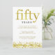 Denna stilrena inbjudan till femtioårsjubileum för guldbröllop står "femtio" i guldtext och har en ram av guldkonfetti längst ner.