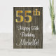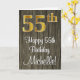 Denna lyxiga, elegant och sofistikerade gratulationskortsdesign med födelsedag har ett stort ordnummer "55:e" som har ett utseende som inspirerats av faux/imitation guld, plus hälsning-födelsedagsmeddelandet "Lycklig 55:e födelsedagen" och ett eget namn i ett skript-stil-teckensnitt på framsidan. Bakgrunden till framsidan har ett faux wood-inspirerat mönster. Insidan har ett anpassat hälsning-födelsedagsmeddelande, eller så kan det kanske rensas och lämnas tomt om ett meddelande ska skrivas för hand i stället. Ett sådant här redigerbart födelsedag kan användas för att bekräfta någons femtiofemte födelsedag. [~Z0000519]