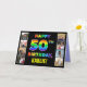 På framsidan av detta hälsningskort för öga-infångande och glad födelsedag finns meddelandet "LYCKLIG 50 BIRTHDAY", där texten har ett dynamiskt, flerfärgat regnbågsspektrum som inspirerar gradienten mönster, tillsammans med anpassadet namn. Fotografierna till lämnat och högerna av det regnbågsmönstrade meddelandet på kortets framsida kan vara personlig, kanske med foton av mottagaren, mottagarens familj och vänner och/eller kortets avsändare. Insidan har ett hälsning-meddelande på personligens födelsedag, eller kan kanske tas bort och lämnas tomt om ett meddelande ska skrivas för hand i stället. Ett roligt, anpassat födelsedagskalenderkort som detta kan skickas i firande på någons femtioårsdag. (Photography © Storytree Studios, Stanford, CA.) [~Z0000667]
