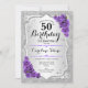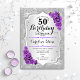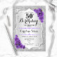 50:e födelsedagsinbjudan. Utformning av blommigten för elegant i silver och lila. Funktioner faux glitter silver rand, lila ro snyggt script font och confietti. Perfekt för en glam-födelsedagsfest.