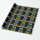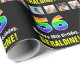 Den här roligten och det uppsvällande födelsedagstextet med papper design har ett stort nummer "56" som har ett dynamiskt multifärgat regnbågsspektrum inspirerat gradienten mönster, plus meddelandet "Lycklig 56:e födelsedagen" och ett anpassade som tar emot namn. Det finns också några foton som kan vara personlig, kanske med foton av mottagaren, mottagarens familj och vänner och/eller mottagaren/avsändarna av presenten. Öga-inslagning papper som denna kan användas när man slår in presenter till någon i firande på deras femtiosjätte födelsedag. (Photography © Storytree Studios, Stanford, CA.) [~Z0000670]