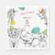 Femtonårsdagen Party Pappersservett med roligt, söta djurillustrationer ritade i pennskiss stil.