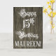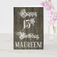 På framsidan av denna formella och unika hälsningskort för födelsedag finns meddelandet "Lycklig 15:e födelsedag" i lyxskript stil. På framsidan finns också en mottagare av anpassade namn, och ett faux wood-utseende inspirerat mönster. Insidan har ett redigerbart hälsning-födelsedagsmeddelande, eller så kan det kanske rensas och lämnas tomt om ett meddelande ska skrivas för hand i stället. Ett sådant här hälsningskort för anpassadets födelsedag kan användas för att bekräfta någons femtonårsdag. [~Z0000556]